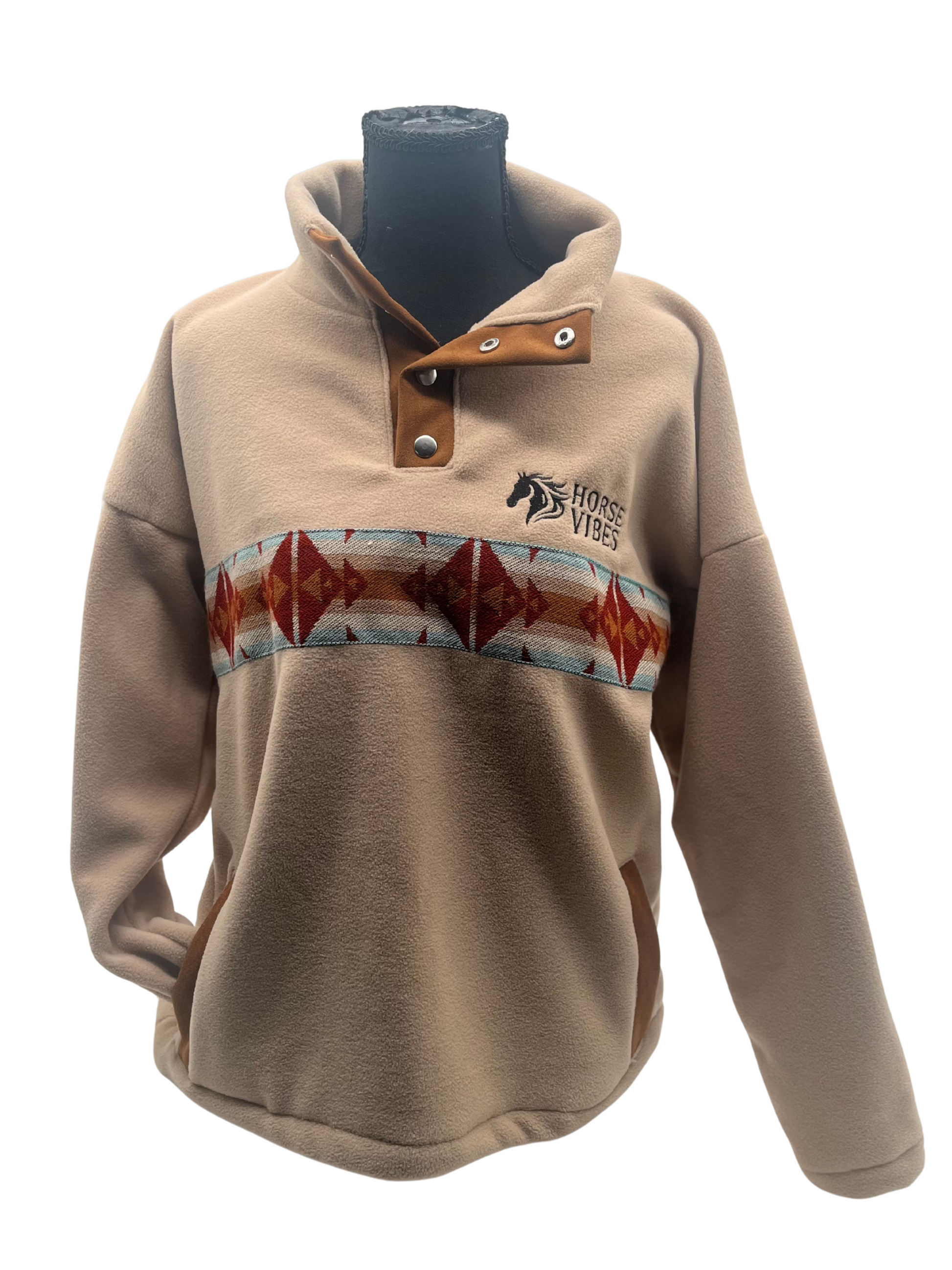 Découvrez le confort de ce hoodie fait en polar doux pour les amoureux de style western. Il se démarque par sa bande tissée à motifs aztèques placée à la poitrine. Son col montant avec bouton pression apporte à la fois style et protection contre le froid. Ses poches latérales doublées ajoute une note pratique. Un choix idéal pour les amateur de style country ou pour un look cozy-chic au quotidien. Les couleurs ou motifs peuvent variés légèrement.