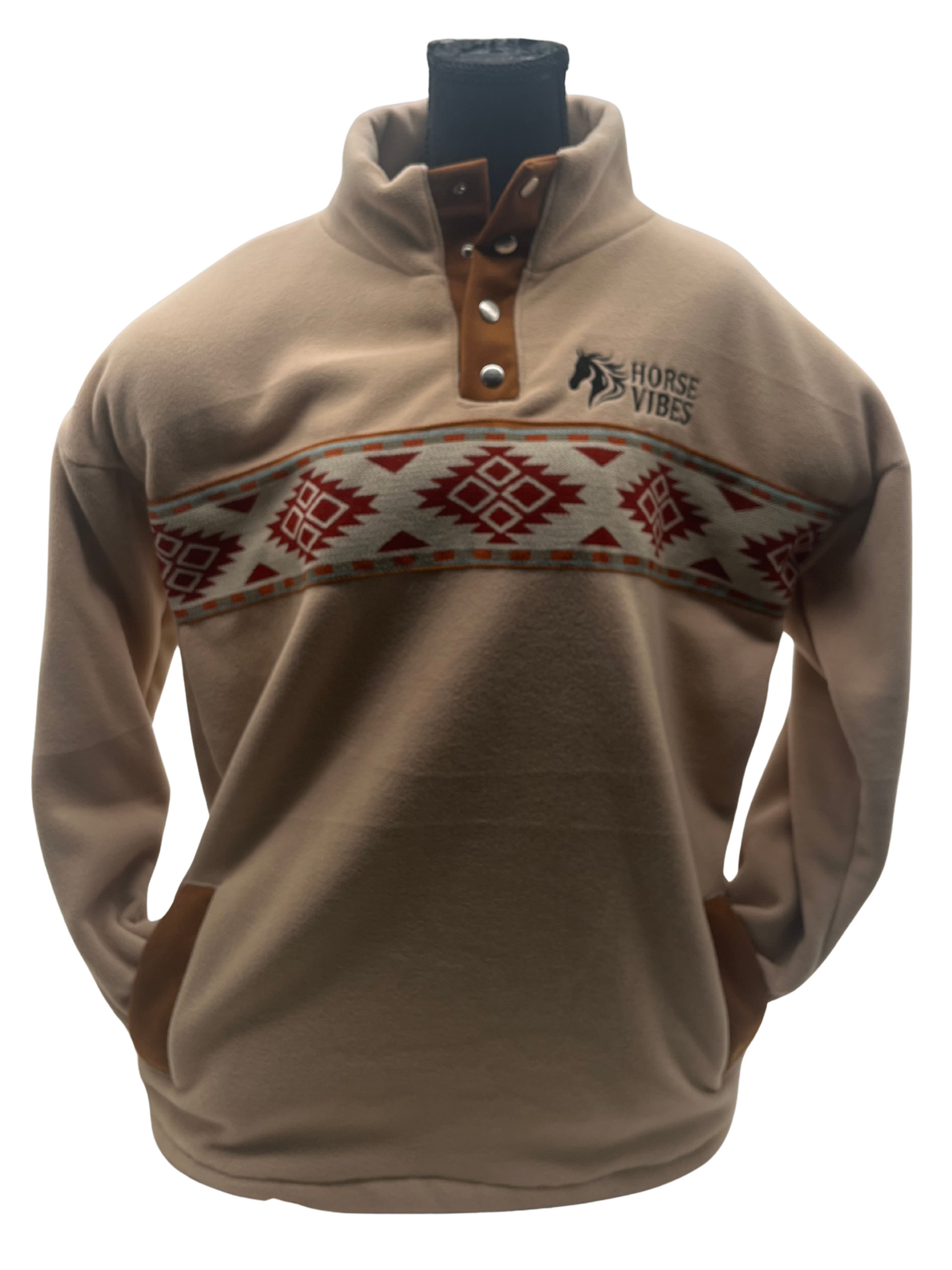 Découvrez le confort de ce hoodie fait en polar doux pour les amoureux de style western. Il se démarque par sa bande tissée à motifs aztèques placée à la poitrine. Son col montant avec bouton pression apporte à la fois style et protection contre le froid. Ses poches latérales doublées ajoute une note pratique. Un choix idéal pour les amateur de style country ou pour un look cozy-chic au quotidien. Les couleurs ou motifs peuvent variés légèrement.